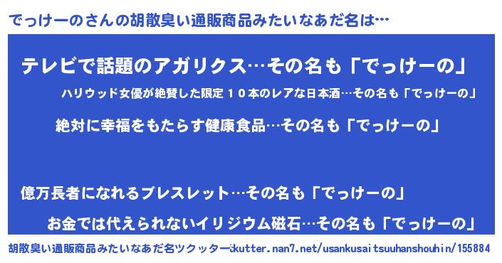 | 意味不明あだ名 | 『永久保存でっけーの』『自称でっけーの』 |