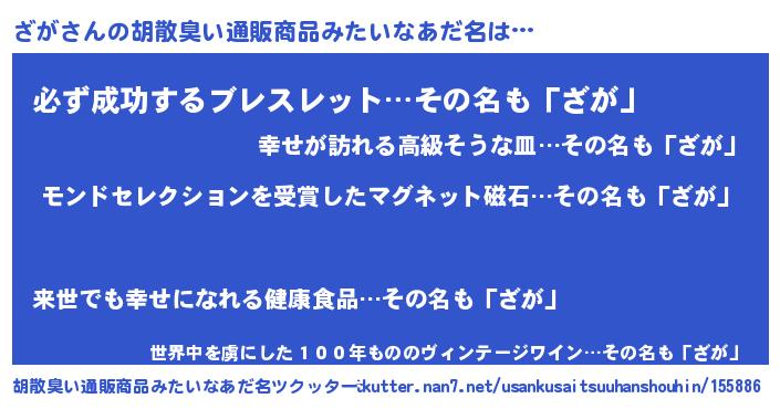 | ヘコむあだ名 | 『ざがにー』『豆乳』『ざが(小並感)』 |