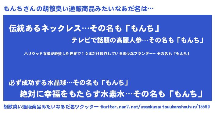 | 意味不明あだ名 | 『住所不定無職もんち(85歳)』『自称もんち』 |