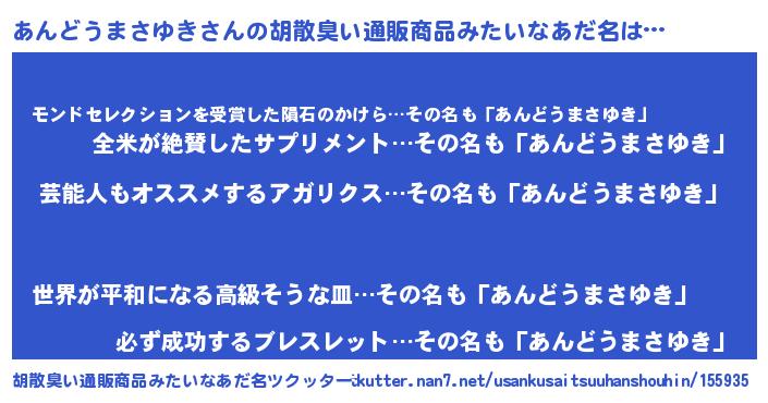 | 意味不明あだ名 | 『自称あんどうまさゆき』 |
