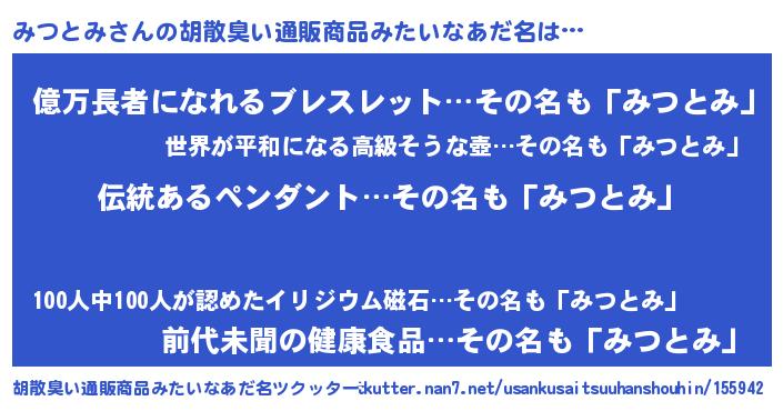 | 意味不明あだ名 | 『とにかく怪しいみつとみ』 |