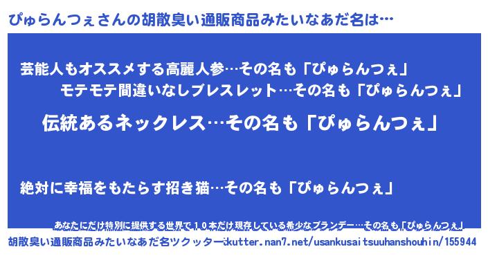 | 意味不明あだ名 | 『とにかく怪しいぴゅらんつぇ』 |