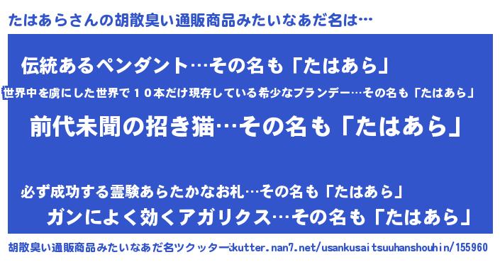 | ヘコむあだ名 | 『たはあら(笑)』『たはっちょ』 |