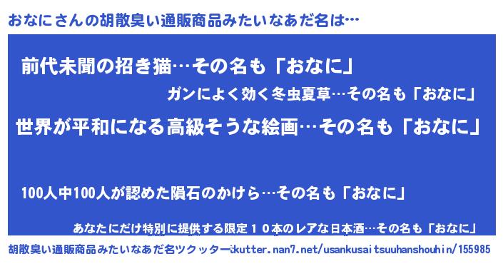 | ポケモン風あだ名 | 『オナニダネ』『ゼニオナ』 |