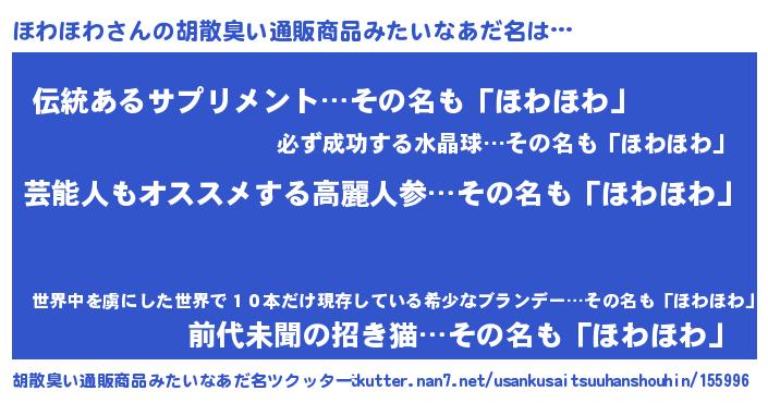 | 意味不明あだ名 | 『自称ほわほわ』『永久保存ほわほわ』 |