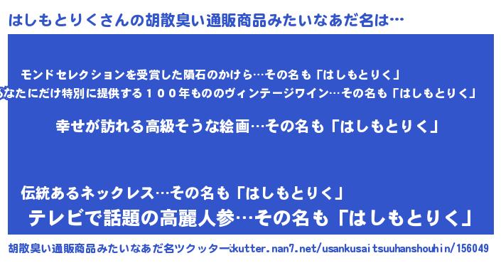| 肩書あだ名 | 『はしもとりく総理大臣』 |