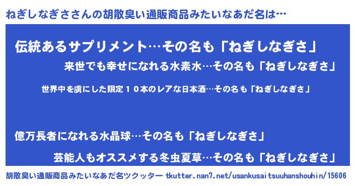 | 意味不明あだ名 | 『住所不定無職ねぎしなぎさ(43歳)』 |