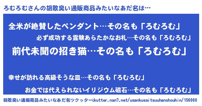 | ヘコむあだ名 | 『ろむろむ(小並感)』『ろむぷりん』 |