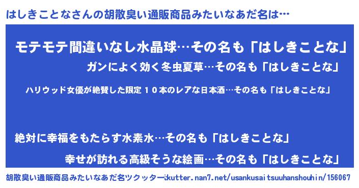 | 意味不明あだ名 | 『住所不定無職はしきことな(47歳)』 |