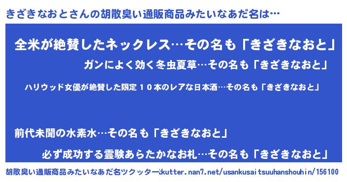 | 男性向けラノベタイトル風あだ名 | 『キザキナオトスレイヤー』 |