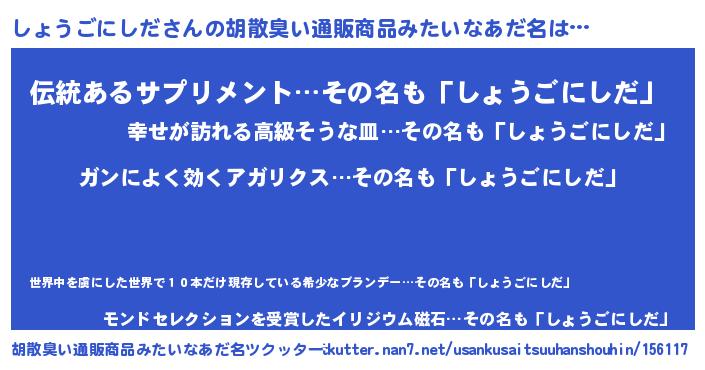 | 意味不明あだ名 | 『自称しょうごにしだ』 |