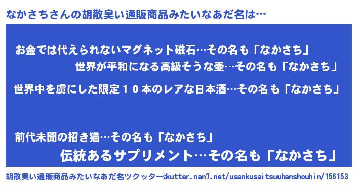 | 男性向けラノベタイトル風あだ名 | 『転生したらなかさちだった件』 |