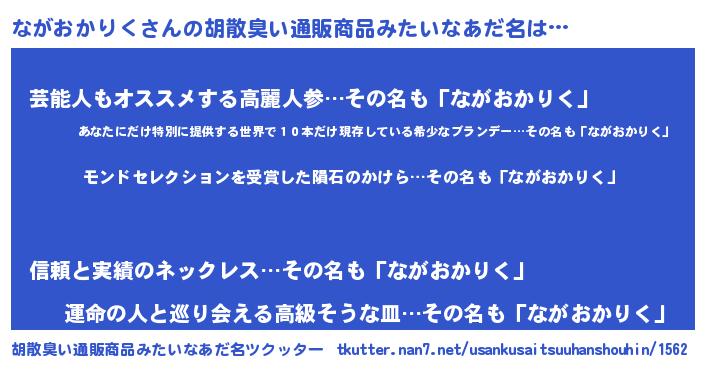 | ヒーロー風カッコイイあだ名 | 『慈愛の使者ながおかりく』 |