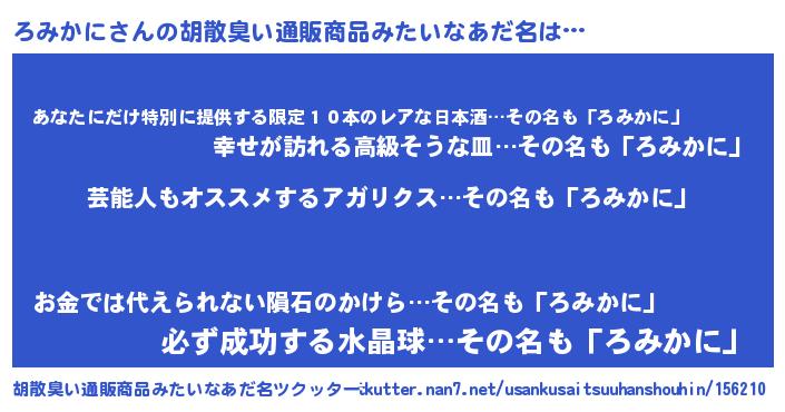 | 意味不明あだ名 | 『自称ろみかに』『ペロリンろみかに』 |