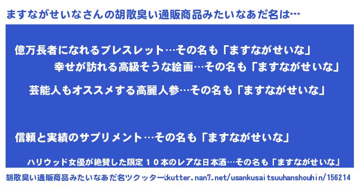 | 恥ずかしいあだ名 | 『マスナガセイナデラックス』『ますちん』 |