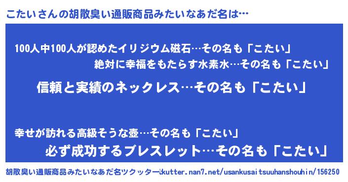 | 意味不明あだ名 | 『とにかく怪しいこたい』 |