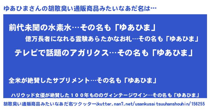 | 意味不明あだ名 | 『自称ゆあひま』『永久保存ゆあひま』 |