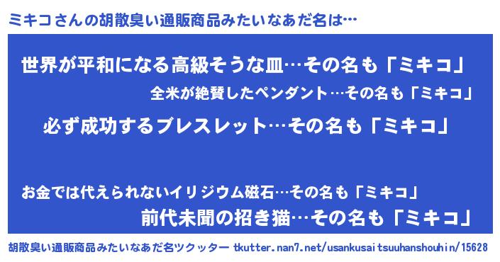 | 意味不明あだ名 | 『ペロリンミキコ』『ミキコフォーエバー』 |
