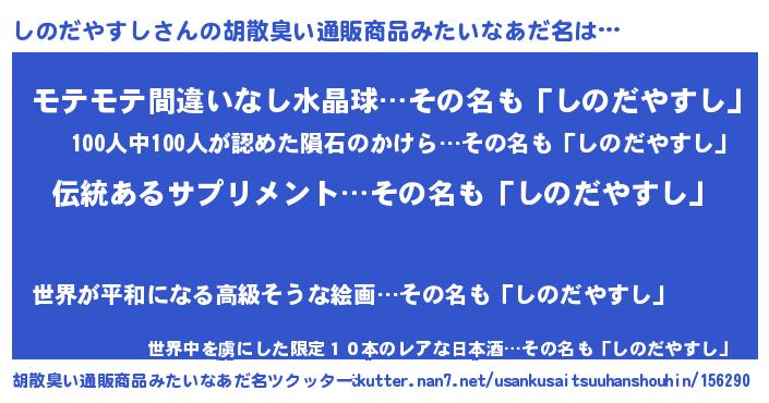 | 意味不明あだ名 | 『とにかく怪しいしのだやすし』 |
