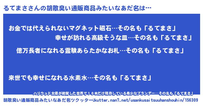 | 意味不明あだ名 | 『ペロリンるてまさ』『永久保存るてまさ』 |
