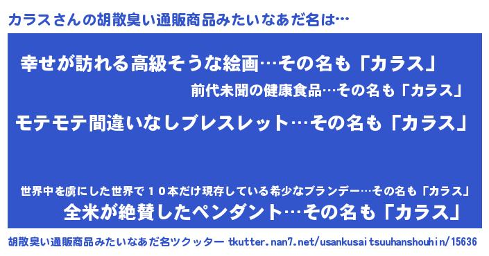 | 男性向けラノベタイトル風あだ名 | 『カラスアートオンライン』 |