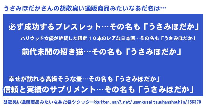 | ヘコむあだ名 | 『うさみほだか(笑)』『うさふぇ~』 |