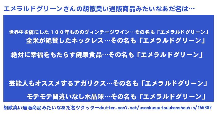 | ヘコむあだ名 | 『エメラルドグリーン(爆)』『エメにー』 |
