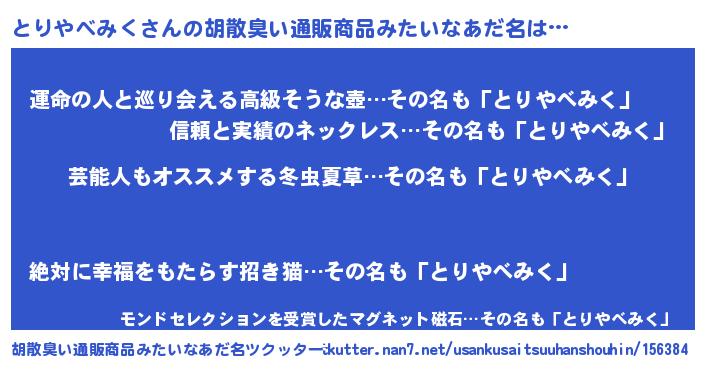 | 意味不明あだ名 | 『自称とりやべみく』 |