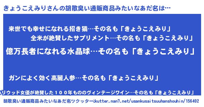| ヘコむあだ名 | 『きょふぇ~』『きょうこえみり(苦笑)』 |