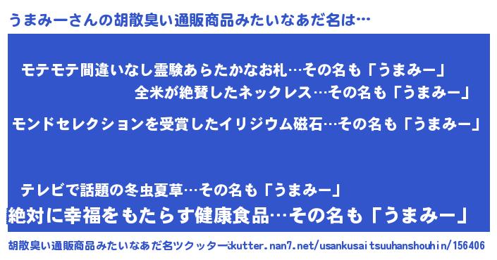 うまみーさんの胡散臭い通販商品みたいなあだ名をツクッター!