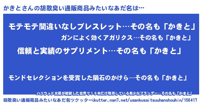 | 意味不明あだ名 | 『とにかく怪しいかきと』『自称かきと』 |