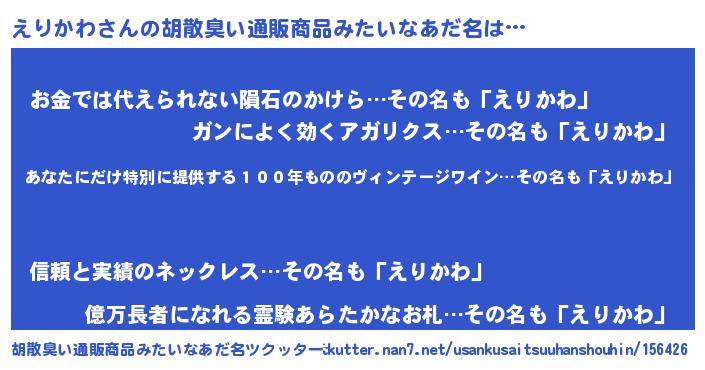 | 意味不明あだ名 | 『住所不定無職えりかわ(11歳)』 |