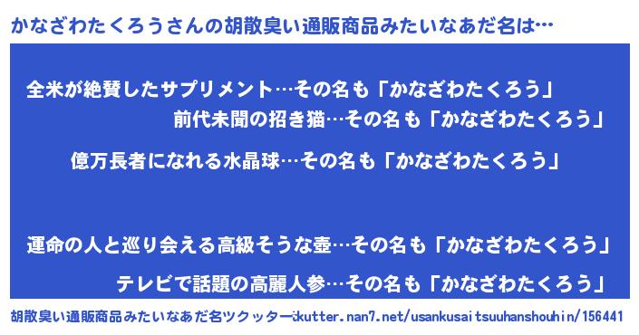 | 意味不明あだ名 | 『ペロリンかなざわたくろう』 |