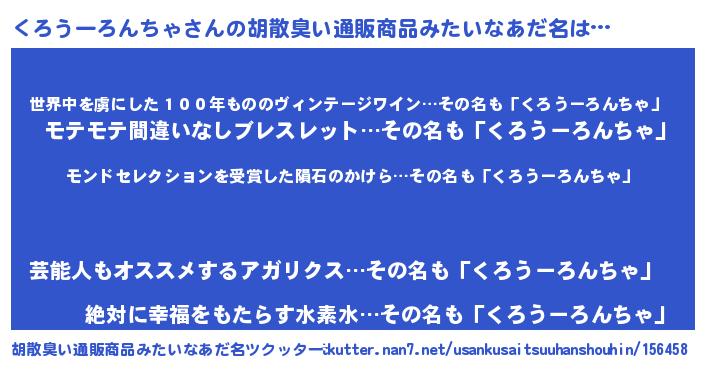 | ヘコむあだ名 | 『くろうーろんちゃ(遠い目)』『くろふぇ~』 |