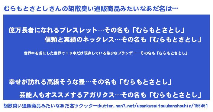 | 意味不明あだ名 | 『住所不定無職むらもとさとし(74歳)』 |