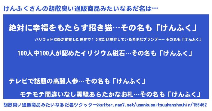 | ヘコむあだ名 | 『けんふく(苦笑)』『けんにー』 |