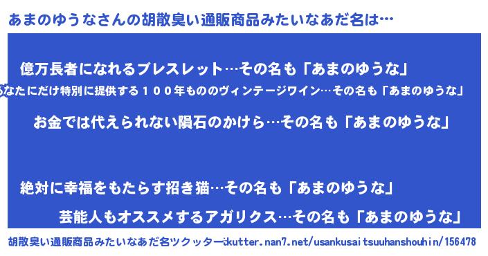 | ヘコむあだ名 | 『あまもー』『あまのゆうな(遠い目)』 |