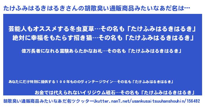 | 伝説のあだ名 | 『封印されしスナイパーたけふみはるきはるき』 |