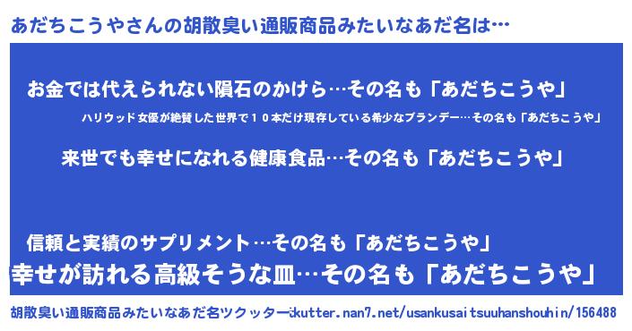 | 意味不明あだ名 | 『永久保存あだちこうや』 |