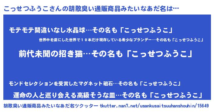 | ヘコむあだ名 | 『こっせつふうこ(笑)』『こっにゅー』 |