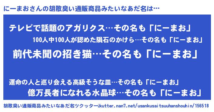| ヘコむあだ名 | 『にーまお(笑)』『にーにゅー』 |