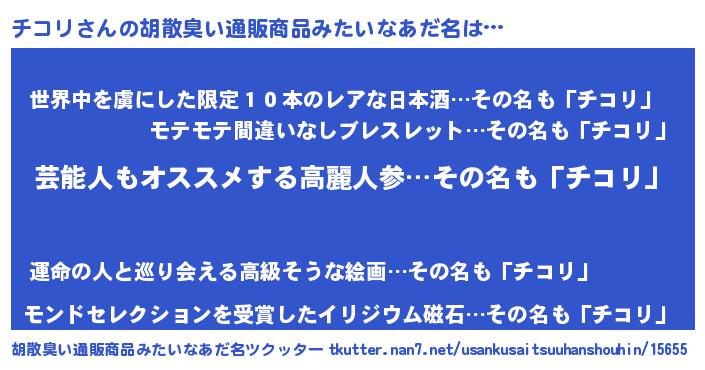 | 意味不明あだ名 | 『自称チコリ』『住所不定無職チコリ(79歳)』 |