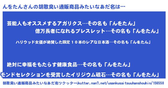 | 意味不明あだ名 | 『住所不定無職んをたん(47歳)』 |