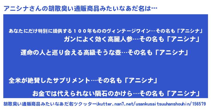 | 男性向けラノベタイトル風あだ名 | 『アニシナに滅ぼされるだけの簡単なお仕事です』 |