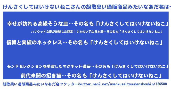 | 意味不明あだ名 | 『とにかく怪しいけんさくしてはいけないねこ』 |