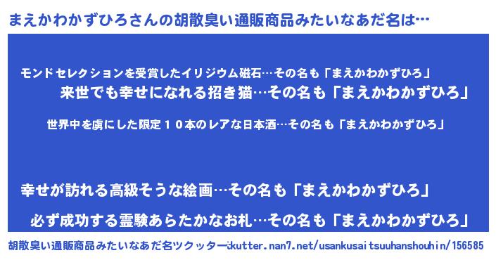 | 伝説のあだ名 | 『魔王と互角に渡り合う占い師まえかわかずひろ』 |