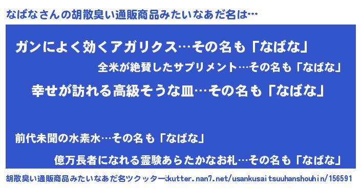 | ヘコむあだ名 | 『つくし』『なばもー』『なばっちょ』 |