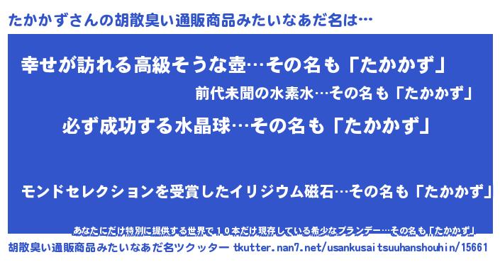 | 意味不明あだ名 | 『ペロリンたかかず』『永久保存たかかず』 |
