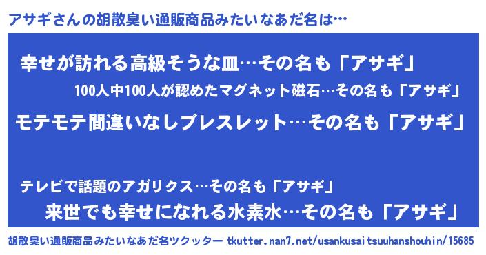 | ヘコむあだ名 | 『アサにー』『豆乳』『アサぷりん』 |
