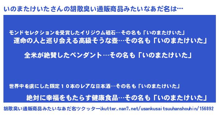 | ヘコむあだ名 | 『いのっちょ』『いのまたけいた(苦笑)』 |